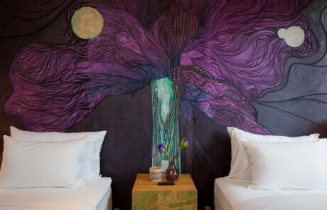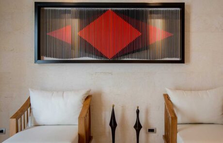 Villa Amaravida has a stunning collection of artwork, which was either sourced or designed and installed by Mary Pakamard. From large-scale pieces that dominate entire walls to smaller accents that add a touch of whimsy, Mary’s artwork enhances the beauty of the villa and elevates the overall experience of its guests.
