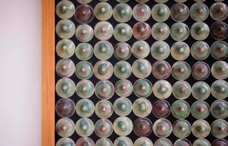 By combining modern technology with traditional painting techniques, Mary has created a truly innovative and captivating approach to creating art installations. The marriage of precision-cut shapes with hand-painted details creates a beautiful juxtaposition that captures the eye and invites the viewer to explore the details of each piece.